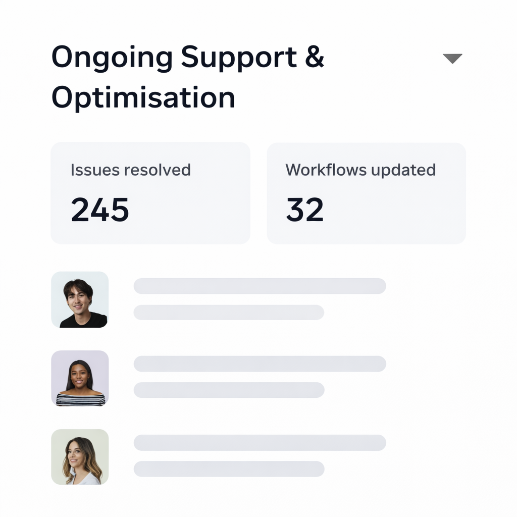 Regular check-ins to review what's working, spot opportunities, and make your system smarter. Think of us as your part-time ops manager.